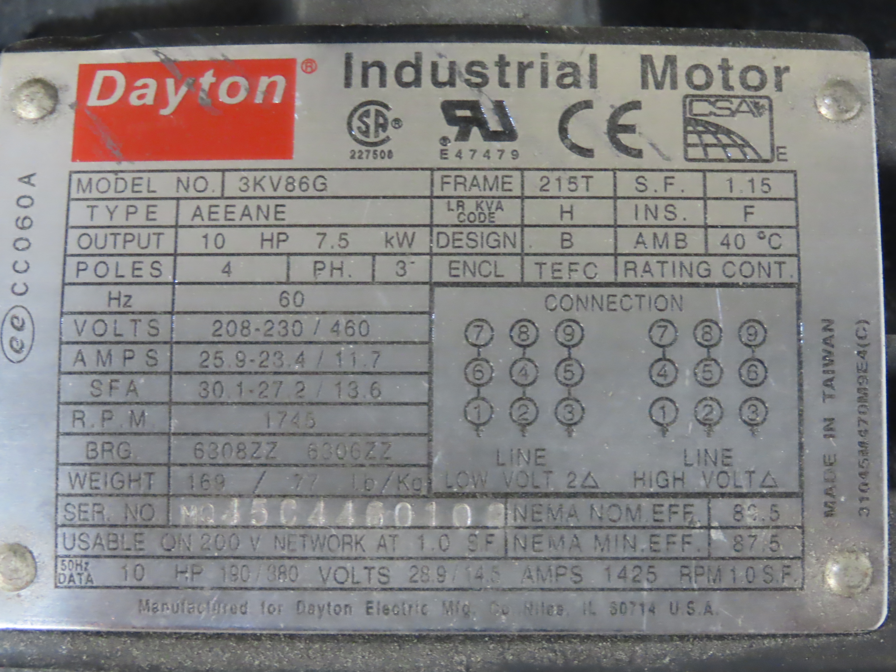 - The motor is like new, and is a Dayton 3KV86G